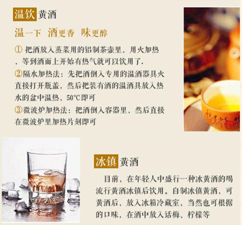 口 感:柔和、鲜甜、清爽、无异味、酒体协调,具有本类黄酒的典型风格 ;