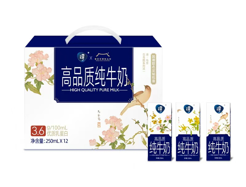 南京卫岗乳业有限公司品牌经理徐琰向评委汇报说,《淳3.6g南博联名款花鸟图纯牛奶》的包装设计上与南京市博物总馆联名,设计灵感源自马荃《花鸟图》中的三幅作品。马荃大师是一位清代杰出的女画家,她的花鸟画风格清新脱俗,充满自然的灵动。产品的外箱和内包均选取《花鸟图》中的经典元素,融合了传统艺术与现代美学,柔和自然的色调搭配精细的工笔画风,使产品既具艺术品位,又传递出纯牛奶天然、健康的属性。